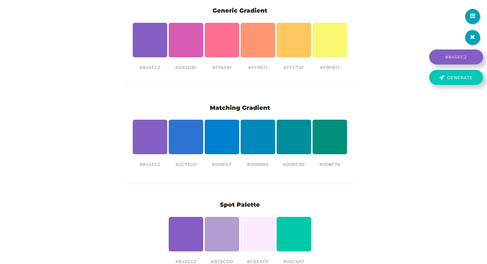 특정 색을 선택하면 그에 맞는 다양한 색상 팔레트를 자동으로 생성해주는 도구입니다.