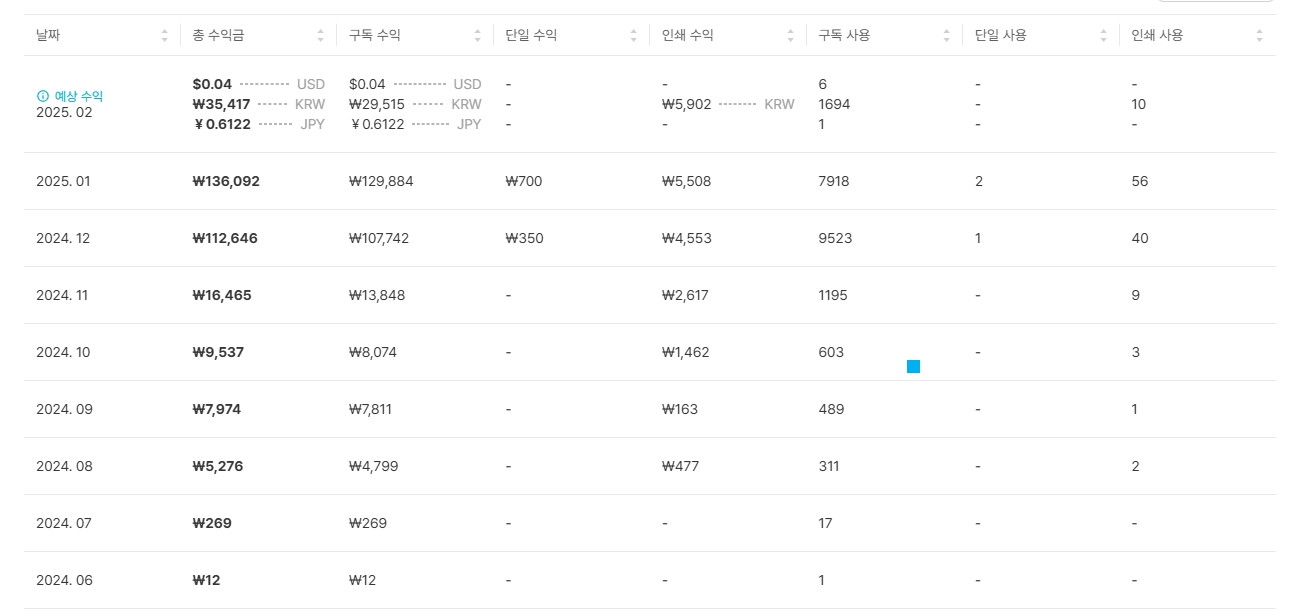 - 구독자의 사용 빈도에 따라 수익이 달라질 수 있습니다.