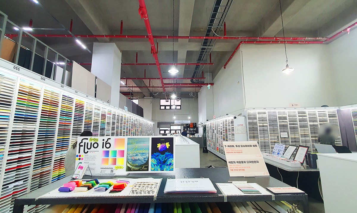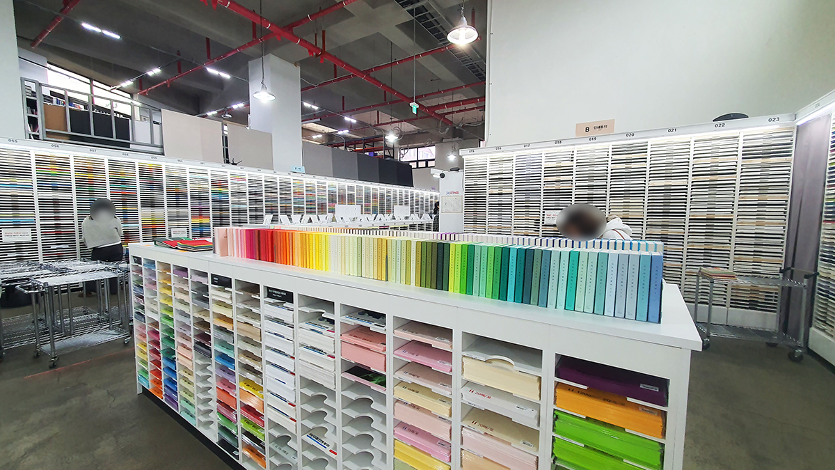 다양한 색상표를 제공하고 있지만, 재고 문제 등으로 색상표에 있는 모든 색상을 보유하고 있는 것은 아니라서 원하는 색상을 찾는 일이 쉽지는 않았습니다. 또한 다양한 사람들이 오가는 곳이기 때문에 예민한 페이퍼는 만질 수 없는 점은 당연하지만 한편으론 질감과 두께를 샘플표로만 확인해야하는 점 또한 아쉬운점으로 남는 것 같습니다.