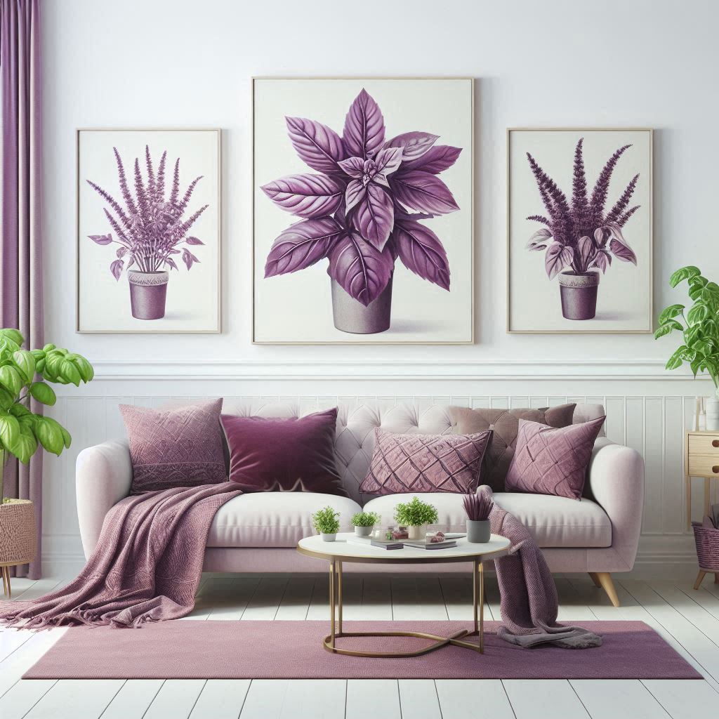 1. 인테리어 디자인: 퍼플 바질은 차분하고 고급스러운 색감으로, 거실이나 침실 같은 생활 공간에서 안정감을 주는 동시에 세련된 느낌을 연출할 수 있습니다. 또한, 독특한 색상 덕분에 개성 있는 공간을 만드는 데도 적합합니다. 특히 식물과 같은 자연적인 요소들과 잘 어울려, 실내 정원이나 창가의 인테리어에서 더욱 돋보일 것입니다.