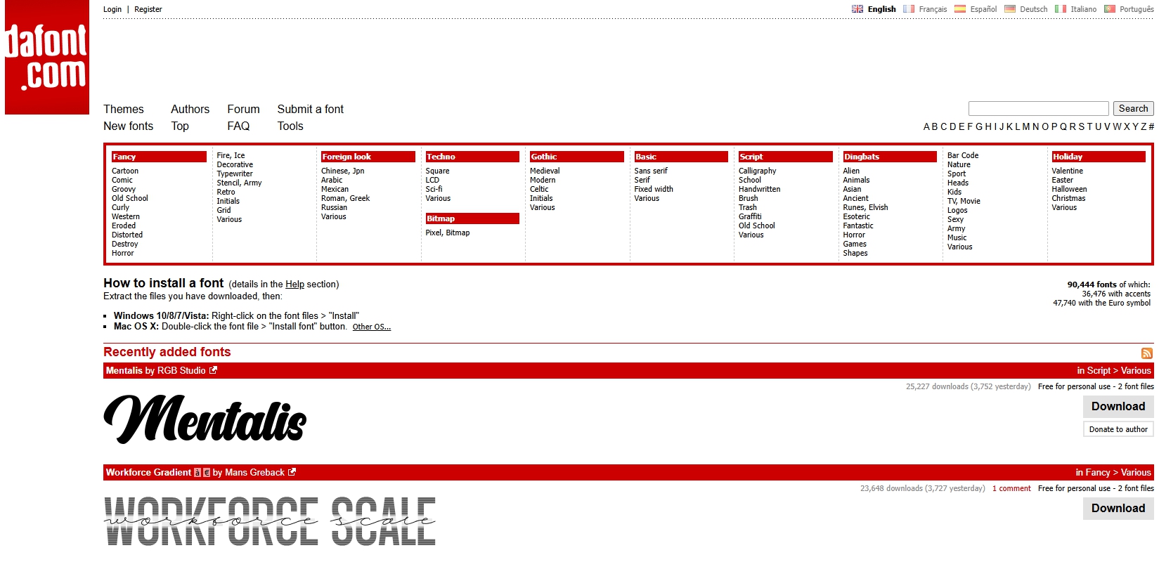 특징: 많은 폰트 보유. 디자이너들이 업로드한 무료 폰트 다운로드 가능