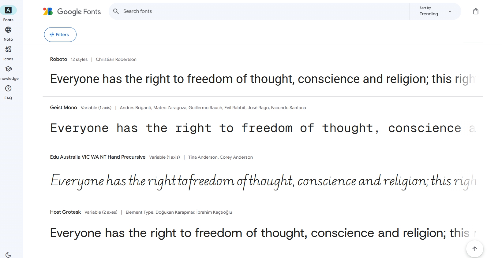 특징: 오픈 소스 기반의 다양한 폰트를 제공하며, 웹 및 인쇄용으로 최적화