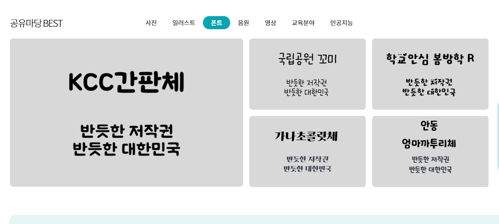 특징: 한국 저작권위원회에서 제공하는 저작권 걱정 없는 무료 한글 폰트