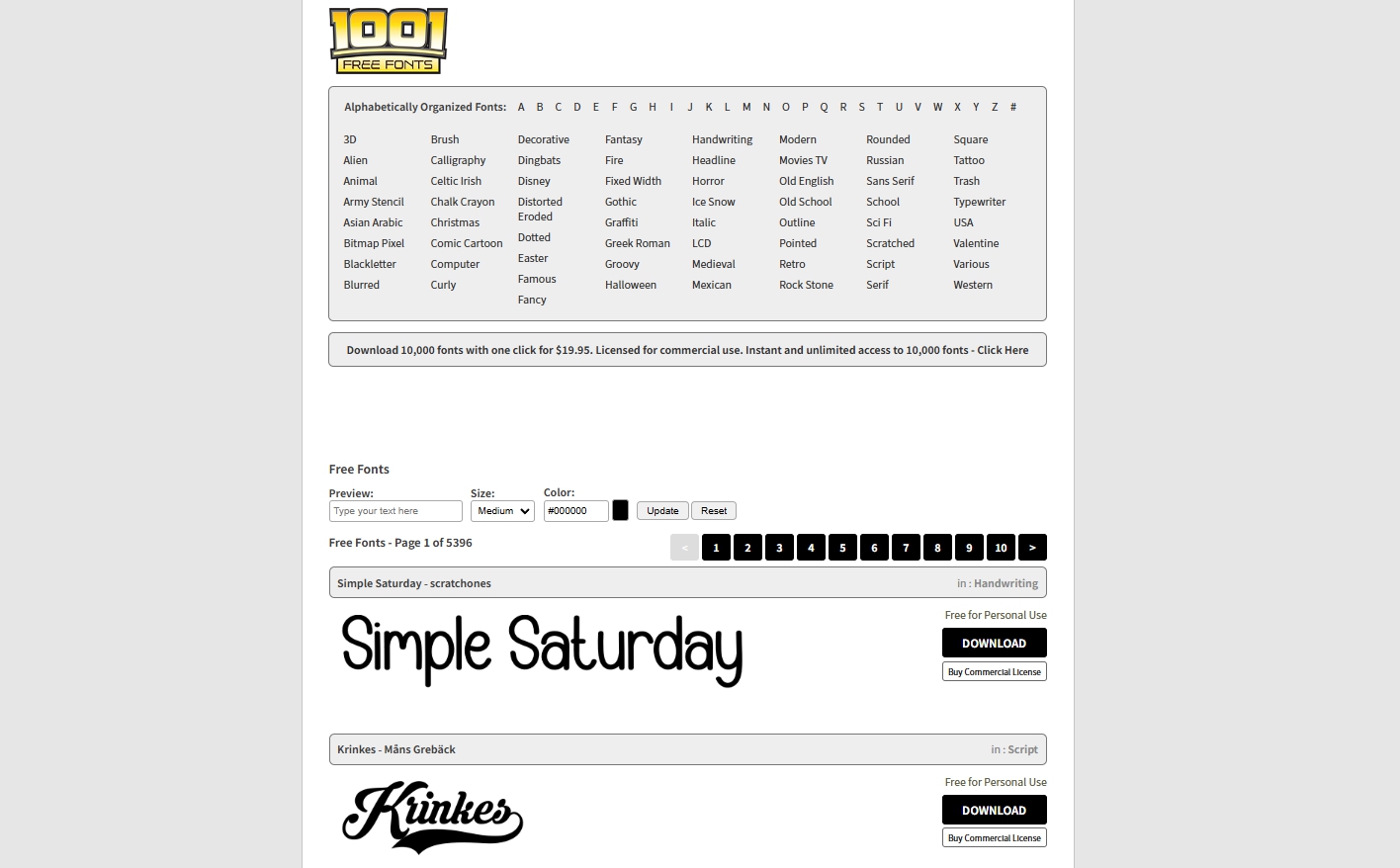 특징: 다양한 테마별 폰트 제공 (판타지, 손글씨, 만화 등)