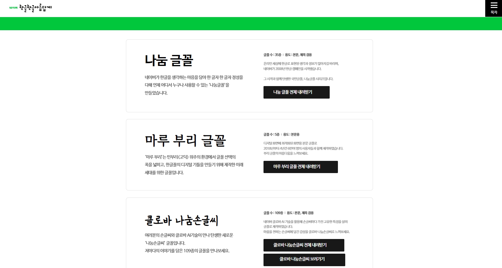 특징: 나눔글꼴 시리즈와 다양한 손글씨 폰트